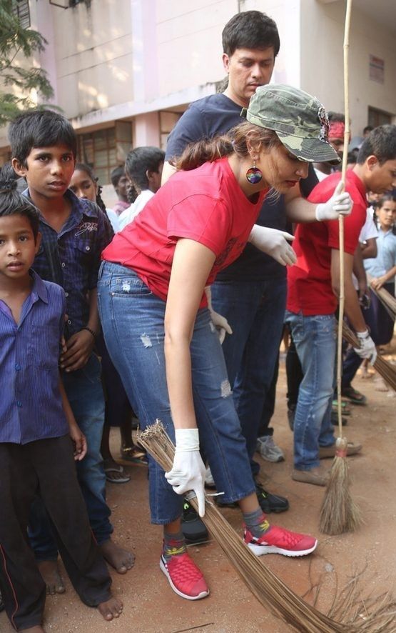 Manchu Lakshmi joins the list of Tollywood celebrities who took part in Swacch Bharat campaign and cleaned the streets of Hyderabad.