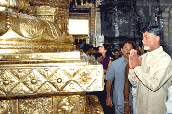 tirupati : m&AjI m&ukhyam&aMtri, telugudESaM pArTI adhyaKshuDu n&ArA chaMdrabAbu n&AyuDu San&ivAraM udayAn&n&E tirum&ala tirupati SrI vEMkaTESvasvAm&in&i kuTuMba sam&EtaMgA darSiMchukun&n&Aru. rAShTraMlO 116 rOjula pATu chaMdrabAbu n&irvahiMchin&a '%m&I kOsaM%' yAtra pUrtayin&a saMdarbhAn&n&i puraskariMchukon&i Ayan&a svAm&ivAri darSan&An&iki koMDaku satIm&aNi bhuvan&ESvari, kum&AruDu lOkESh#`, kODalu brAhm&aNilatO kalisi vachchAru. I saMdarbhaMgA Ayan&a satIsam&EtaMgA svAm&iki pratyEka pUjalu n&irvahiMchAru. m&I kOsaM yAtra SukravAraM n&ADu an&aMtapuraM paryaTan&atO m&ugisin&a viShayaM telisiMdE. m&I kOsaM yAtra 116 rOjulu n&irvahiMchin&a chaMdrabAbu svAm&i vAriki akhilAMDaM vadda 116 kobbarikAyalu koTTi m&okku chelliMchukun&n&Aru.