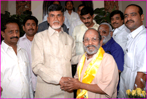 హైదరాబాద్ : వచ్చే ఎన్నికల్లో కాంగ్రెస్ అవినీతి పాలన, తెలుగుదేశం పారదర్శక విధానాల మధ్య జరిగే యుద్ధం అని టిడిపి అధ్యక్షుడు చంద్రబాబునాయుడు అభివర్ణించారు. తూర్పుగోదావరి జిల్లా మండపేట నియోజకవర్గం టౌన్ బ్యాంకు చైర్మన్ వల్లూరి రామన్నచౌదరి, సాయికుమార్ ల ఆధ్వర్యంలో 300 మంది కార్యకర్తలు సోమవారంనాడు చంద్రబాబు సమక్షంలో టిడిపిలో చేరారు. ఈ సందర్భంగా తన నివాసం వద్ద జరిగిన సమావేశంలో చంద్రబాబు ప్రసంగించారు.