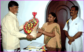 హైదరాబాద్ : భారత హాకీ మాంత్రికుడు స్వర్గీయ ధ్యాన్ చంద్ 104వ జన్మదినోత్సవాన్ని పురస్కరించుకొని శనివారంనాడు మాజీ ముఖ్యమంత్రి, టిడిపి అధ్యక్షుడు చంద్రబాబు నాయుడిని మహిళా వెయిటి లిఫ్టర్ కరణం మల్లీశ్వరి ఆయన నివాసంలో కలుసుకొని మాట్లాడారు. నగరంలో ఓ అధికారిక కార్యక్రమంలో పాల్గొనేందుకు వచ్చిన ఈ తెలుగింటి ఆడపడుచు, 2000 సంవత్సరపు సిడ్నీ ఒలిపింక్స్ మహిళల వెయిటి లిఫ్టింగ్ లో మన దేశానికి ఒకే ఒక కాంస్య పతకాన్ని మల్లీశ్వరి సాధించిపెట్టిన విషయం తెలిసిందే. ధ్యాన్ చంద్ పుట్టిన రోజు సందర్భంగా జాతీయ క్రీడా దినోత్సవం నిర్వహించుకుంటున్న సందర్భంగా మల్లీశ్వరి చంద్రబాబుకు పుష్పగుచ్ఛం అందించి శుభాకాంక్షలు తెలిపారు.