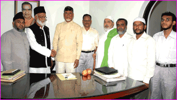 హైదరాబాద్ : మైనారిటీల అభ్యున్నతికి తెలుగుదేశం పార్టీ ఎంతగానో కృషి చేసిందని ఇండియన్ నేషనల్ లీగ్ జాతీయ అధ్యక్షుడు ప్రొఫెసర్ మహ్మద్ సులేమాన్ పేర్కొన్నారు. సులేమాన్ నేతృత్వంలో ఐదుగురు సభ్యుల ప్రతినిధి బృందం తెలుగుదేశం అధ్యక్షుడు నారా చంద్రబాబు నాయుడుతో గురువారంనాడు టిడిపి ప్రధాన కార్యాలయం ఎన్టీఆర్ ట్రస్ట్ భవన్ లో భేటీ అయ్యారు. చంద్రబాబు నాయుడు నాయకత్వం పట్ల తమకు పూర్తి విశ్వాసం ఉందని, తెలుగుదేశం పార్టీకి తమ పూర్తి సంఘీభావాన్ని సులేమాన్ ప్రకటించారు. టిడిపి రాష్ట్ర కార్యనిర్వాహక కార్యదర్శి ఎం.ఎ. హకీం, హైదరాబాద్ నగర శాఖ ఉపాధ్యక్షుడు డిపిరెడ్డి వీరి వెంట ఉన్నారు. బృందంలో నేషనల్ లీగ్ రాష్ట్ర కన్వీనర్ మహ్మద్ అల్లావుద్దీన్ అన్సారీ, కేరళ శాఖ కార్యదర్శి అహ్మద్ దేవర్ కోవి, హమీదియా ఎడ్యుకేషనల్ సొసైటీ చైర్మన్ డాక్టర్ ఇక్బాల్ బాబా కమ్లియా, రాష్ట్ర కార్యవర్గ సభ్యుడు ఎం.జి. అన్సారీ ఉన్నారు.