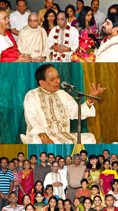 Several Carnatic music lovers and the followers of BMK came to the venue 3 hours ahead of the start time so that they could capture the glimpses of BMK up on his arrival. Sunnyvale Temple priests and all audience welcomed BMK with a big procession from parking lot into the auditorium.
