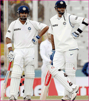 aMtaku m&uMdu bhArat#` TAs#` gelichi byATiMg#`n&u tIsukuMdi. goutaM gaMbhIr#` - vIrEMdra sehvAg#`latO toli in&n&iMgs#`n&u prAraMbhiMchin&a bhArat#` AdilOn&E taDabaDiMdi. kEvalaM 1.6va Ovar#`lOn&E sehvAg#` brAD#` baMtin&i prayar#` chEtilOki koTTi peviliyan`ku chErukun&n&ADu. kAgA, chen&n&eilO jarigin&a toli TesT#` m&yAch#` chivarilO sUpar#` chEj#`tO bhArat#` an&UhyaMgA vijayaM sAdhiMchiMdi. dIn&itO bhArat#` I sIrIs#`lO 1 - 0 AdhikyaMlO uMdi. m&ohAlI TesT#` m&yAch#` kUDA gelistE iMglaMD#`pei van&DE, TesT#` m&yAch#`lan&u svIp#` chEsin&a ghan&atatO pATu bhArat#` ryAMkiMgs#`lO reMDO sthAn&An&n&i kUDA poMdutuMdi. reMDO TesT#` kUDA n&eggi sIrIs#`n&u svIp#` chEyAlan&n&a utsAhaMtO bhArat#`, chivari TesT#` m&yAch#` ayin&A EdO okalA gelichi paruvu dakkiMchukOvAlan&n&a dIKshatO iMglaMD#` pOTI paDutun&n&Ayi.