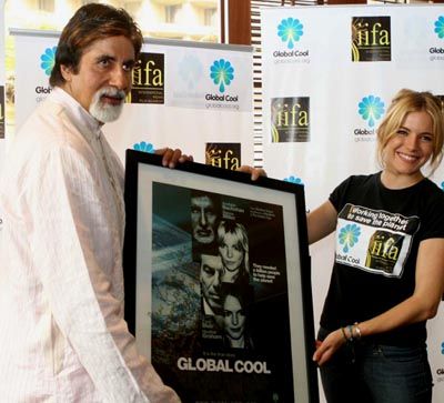 A Crusader too: International star Sienna Miller and superstar Amitabh Bachchan launching Crusade against Global Warming in Mumbai on Tuesday.