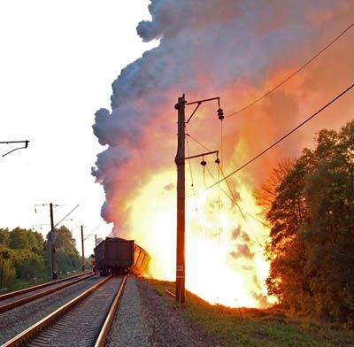 July 2007. Poisonous chemical fumes released after a train derailed in the Ukraine, injured 20 people, including