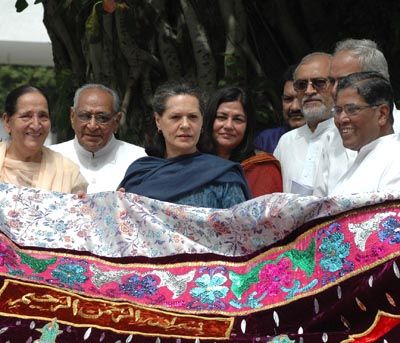 Thanks Giving: Congress President Sonia Gandhi with party leaders sending a Chaddar as an offering to the shrine of Hazarat