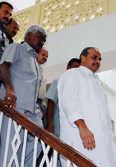 YS leaves polling booth: Chief Minister Y.S. Rajashekhar Reddy coming out of polling booth after casting his vote in presidential elections on Thursday.