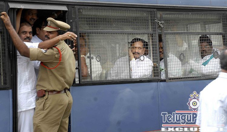 HYDERABAD: The police took into custody 61 MLAs, 10 MLCs and six MPs of the Telugu Desam Party when they staged a dharna in front of the camp office of Chief Minister Y.S. Rajasekhara Reddy on Sunday afternoon, demanding withdrawal of criminal proceedings against Kovvur MLA T.V. Rama Rao who was also among those arrested.