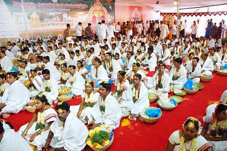 Kalyanamasthu is a meeting of hearts told Sri N.D.Tiwari, HE Governor of Andhra Pradesh He has attended the 4thphase of Kalyanamasthu programme at Lalitha Kala Thoranam in Hyderabad on October 28.Speaking on this occasion he said that Tirumala is a great pilgrimage centre and Seven Hills are sacred hills and also said that marriage is a very solemn event, particular this mass marriage he added. He blessed all the 153 couples.Dr. Rosaiah garu, Hon’ble Chief Minister of Andhra Pradesh said that TTD has done a good work i.e, Kalyanamasthu for five phases across the state. Nearly 35,000 couples have got married in the five phases of Kalyanamasthu. He congratulated the TTD for their service to the thousands of common people.