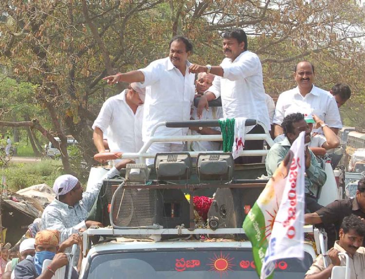 Chiranjeevi's road show in Bantumilli of Krishna Dt. on Wednesday