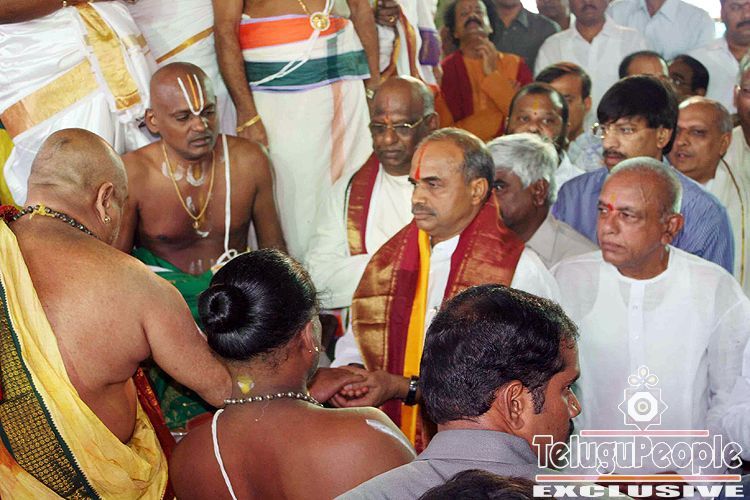 Chief Minister Dr. Y S Rajsheker Reddy participating in the Varuna Yagnam organized by TTD at Exhibition grounds in Hyderabad on Thrusday. Minister for Endowment Gade Venkata Reddy is also seen.