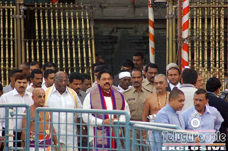 President of Sri Lanka Mr. Mahinda Rajapaksa accompanied by his wife Ms.Shiranthi Rajapakse visited Sri Vari Temple, Tirumala on Saturday evening. On his arrival in front of Sri Vari Temple the priests and officials have welcomed the President with Temple honors ( ISTHIPAKAL). After dharshan of lord, the Chairman TTDs Sri D.K.Audikesavulu, Chairman TTDs and I.Y.R.Krishna Raa, Executive Officer presented Sri Vari Prasadam,Books and Photo Frame, the veda pandits of the temple have blessed him with Vedic Hymns at Ranganayakula Mandapam.