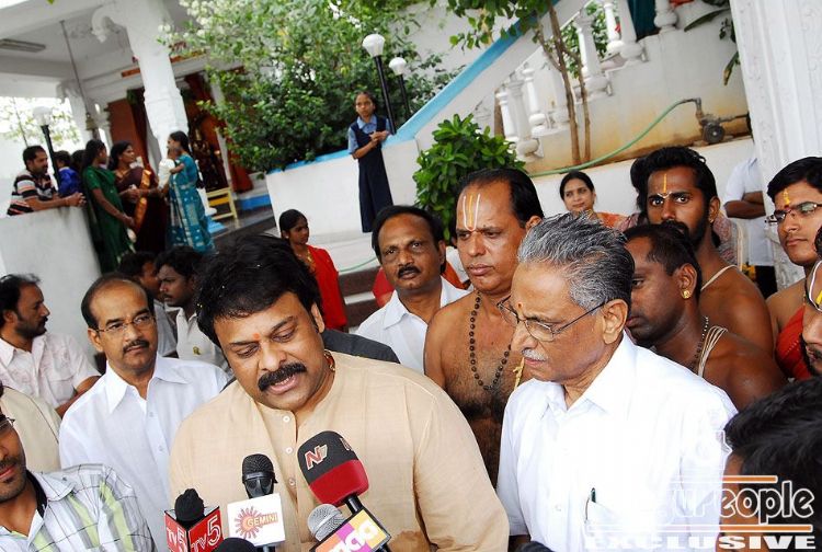Chiru visits temple in Film Nagar