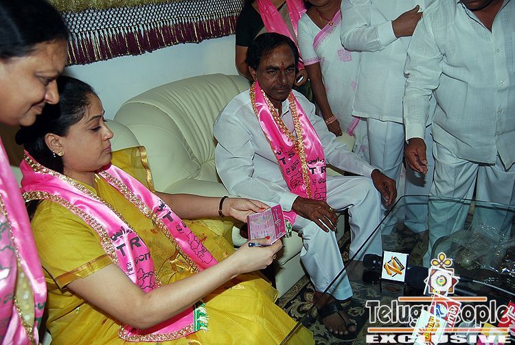 Popular Telugu film actress Vijayshanti on Saturday merged her Talli Telangana Party with the Telangana Rashtra Samithi (TRS). She met TRS president K Chandrasekhara Rao at the latter's residence here and became a member of TRS.