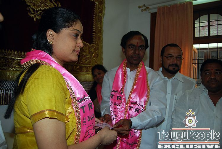 Popular Telugu film actress Vijayshanti on Saturday merged her Talli Telangana Party with the Telangana Rashtra Samithi (TRS). She met TRS president K Chandrasekhara Rao at the latter's residence here and became a member of TRS.