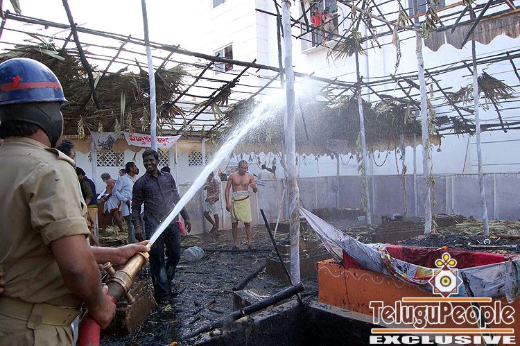 TRS Yagna mandup caught Fire due to crackers basting at TRS office on 9th Feb