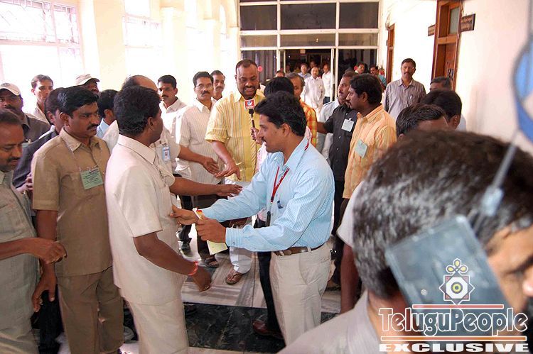 Legislators of opposition parties complaining to Speaker K. R. SureshReddy about the alleged attack on them by marshals. A legislatorvemana Reddy , who was injured in the scuffle also called on the speaker.They alleged that marshals manhandled them while evicting them afterthe speaker suspended them for the day for stalling proceedings of thehouse.Venama Reddy seen Hand fractured on 11th Feb