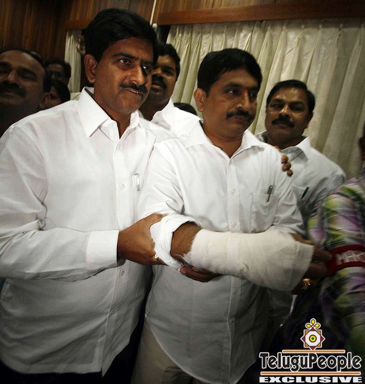 Legislators of opposition parties complaining to Speaker K. R. SureshReddy about the alleged attack on them by marshals. A legislatorvemana Reddy , who was injured in the scuffle also called on the speaker.They alleged that marshals manhandled them while evicting them afterthe speaker suspended them for the day for stalling proceedings of thehouse.Venama Reddy seen Hand fractured on 11th Feb