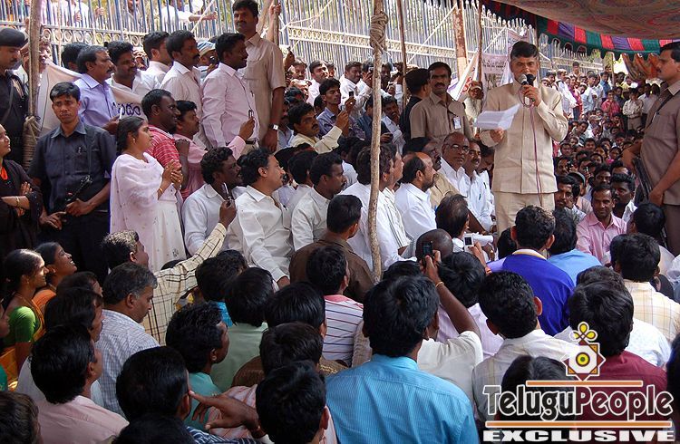 Chandrababu Naidu,Nomula,Chada,Eetela Rajender Visited I.K.Pathakam Employees H.Streike Camp At I.Park