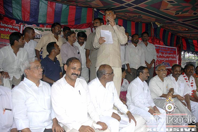 Chandrababu Naidu,Nomula,Chada,Eetela Rajender Visited I.K.Pathakam Employees H.Streike Camp At I.Park