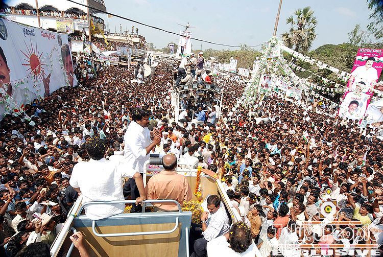 Praja Rajiayam party president Chranjivi in Guntur District AP Raod show on 11th jun