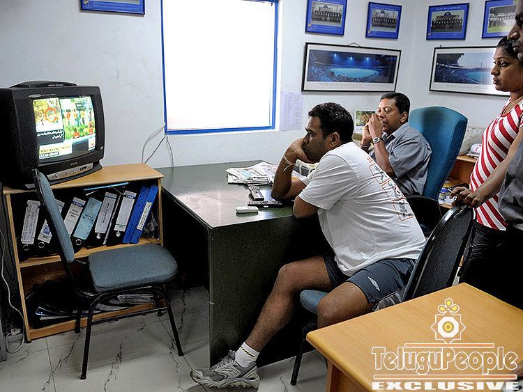 Former Sri Lankan cricketer Ravindra Pushpakumara watches the news arrive in Colombo.