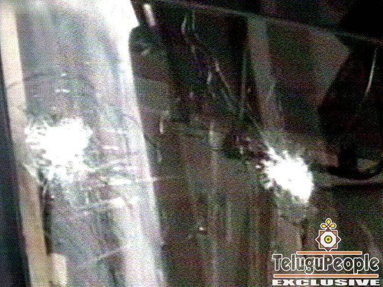 Gunshot holes are left in the window of the Sri Lankan team coach.