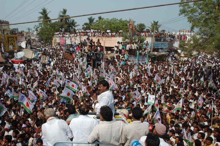 Chiranjeevi's road show in Bantumilli of Krishna Dt. on Wednesday