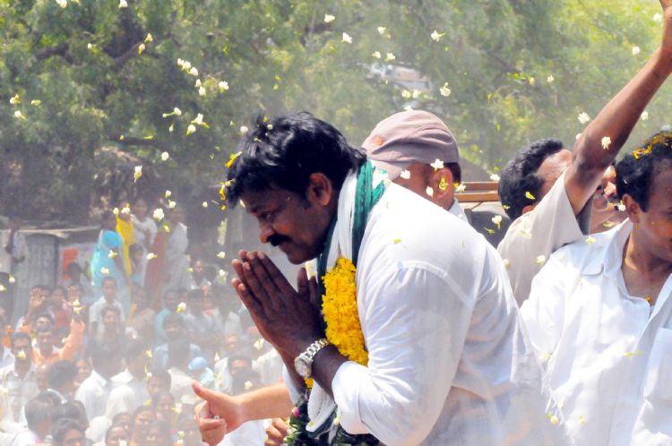 Chiranjeevi's road show in Bantumilli of Krishna Dt. on Wednesday