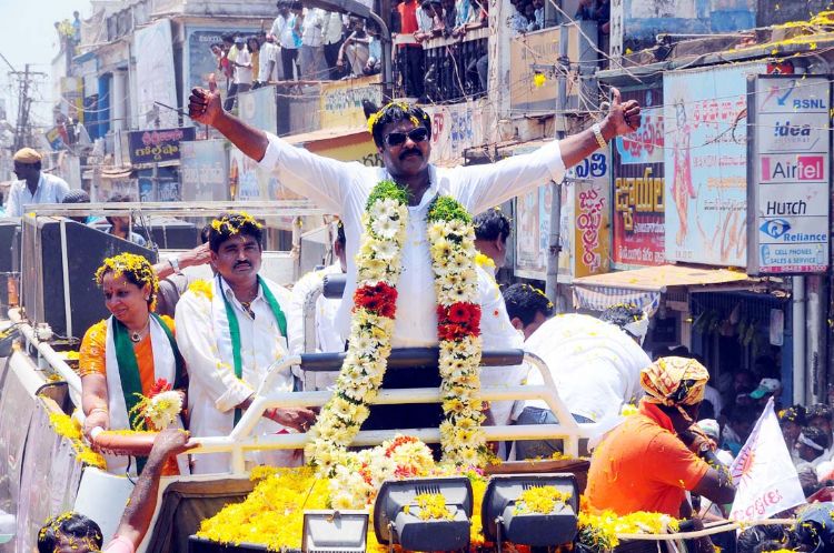 Chiranjeevi road show in Ealuru