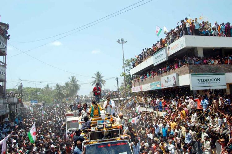 Chiranjeevi road show in Palakollu