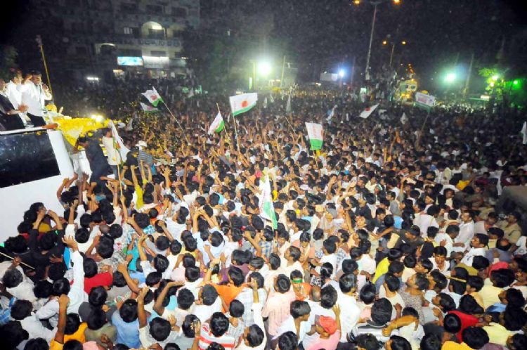 Chiranjeevi road show in Singhnagar, Krishna Dt