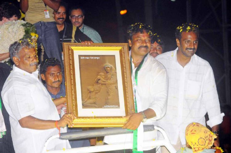 Chiranjeevi road show in Singhnagar, Krishna Dt