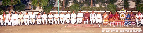 A 35-member Council of Ministers of the newly-elected Congress government was sworn in by Andhra Pradesh Governor N. D. Tiwari in the presence of Chief Minister Y. S. Rajasekhara Reddy and a host of dignitaries on the lawns of Raj Bhavan on Monday evening.