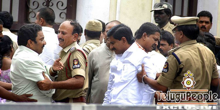 HYDERABAD: The police took into custody 61 MLAs, 10 MLCs and six MPs of the Telugu Desam Party when they staged a dharna in front of the camp office of Chief Minister Y.S. Rajasekhara Reddy on Sunday afternoon, demanding withdrawal of criminal proceedings against Kovvur MLA T.V. Rama Rao who was also among those arrested.