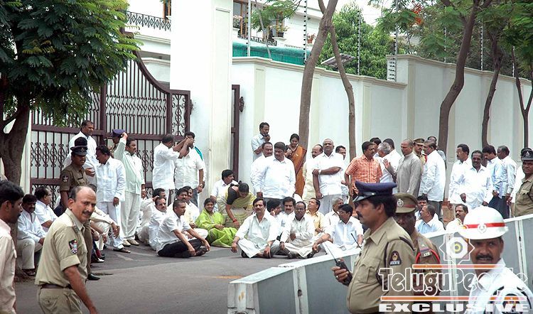 HYDERABAD: The police took into custody 61 MLAs, 10 MLCs and six MPs of the Telugu Desam Party when they staged a dharna in front of the camp office of Chief Minister Y.S. Rajasekhara Reddy on Sunday afternoon, demanding withdrawal of criminal proceedings against Kovvur MLA T.V. Rama Rao who was also among those arrested.