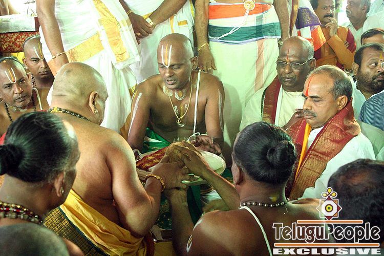 Chief Minister Dr. Y S Rajsheker Reddy participating in the Varuna Yagnam organized by TTD at Exhibition grounds in Hyderabad on Thrusday. Minister for Endowment Gade Venkata Reddy is also seen.