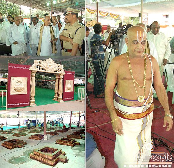 Chief Minister Dr. Y S Rajsheker Reddy participating in the Varuna Yagnam organized by TTD at Exhibition grounds in Hyderabad on Thrusday. Minister for Endowment Gade Venkata Reddy is also seen.