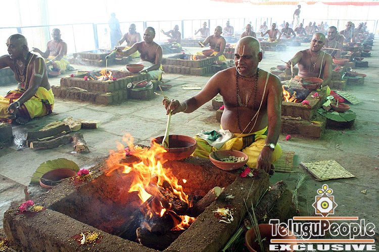 Chief Minister Dr. Y S Rajsheker Reddy participating in the Varuna Yagnam organized by TTD at Exhibition grounds in Hyderabad on Thrusday. Minister for Endowment Gade Venkata Reddy is also seen.