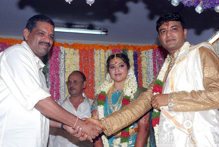 Amid tight personal security, popular heroine Meena , who made her debut as child artiste and was later promoted as heroine, got married with a Bangalore-based Software Engineer Vidyasagar at Arya Vysya Samaja Kalyanamandapam in Tirumala, abode of Lord Venkateswara Swamy.Meena wearing a sky blue Kanchivaram sari and diamond jewellery dazzled. After tying the nuptial knot, the newly-wed couple offered prayers to Lord Venkateswara and later left for Chennai, where reception is going to take place on July 14 (Tuesday) evening at Mayor Ramanathan Hall for Kollywood and Tollywood stars.During the marriage, reporters and electronic media were not allowed to get into the hall where marriage was taking place.In fact, they were attacked by her security personnel and two cameras were damaged.