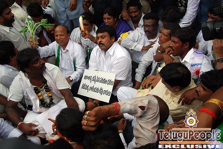 Back to Chiranjeevi leads PRP dharna in Hyd
