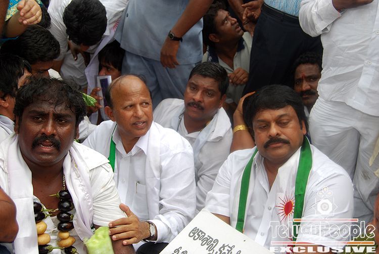 Back to Chiranjeevi leads PRP dharna in Hyd