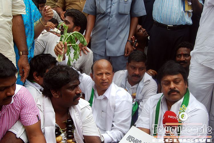 Back to Chiranjeevi leads PRP dharna in Hyd