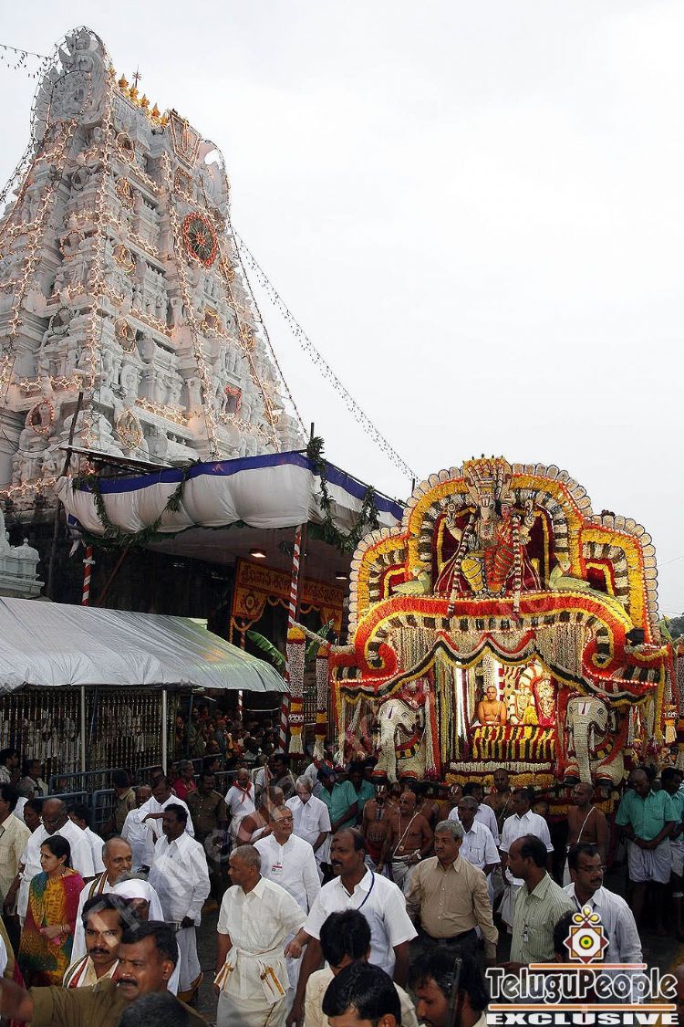 The processional deity of Lord Malayappaswamy along with His consorts were taken out in a procession in
