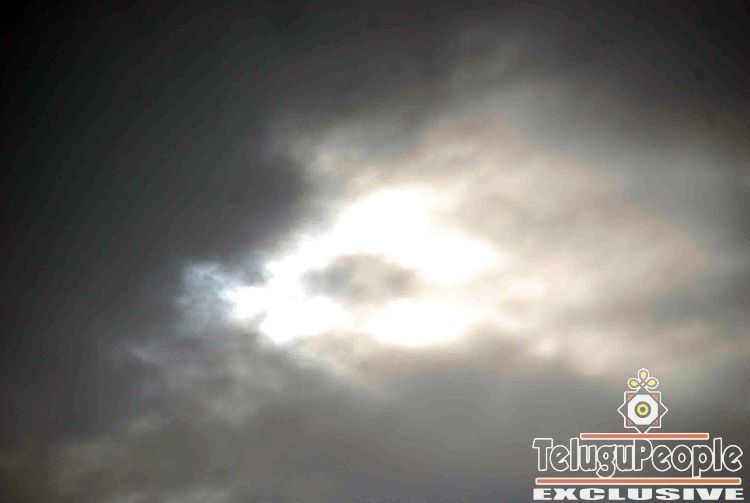A partial solar eclipse is seen through clouds in Hyderabad
