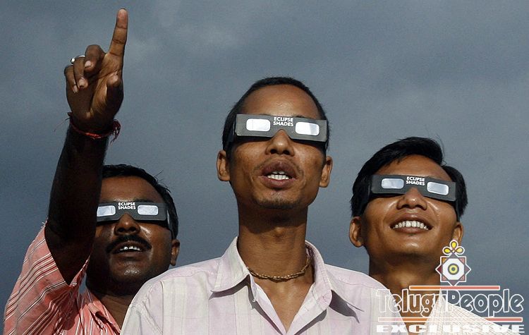 People watch the solar eclipse at Dhulia Gach village, 57 km (35 mi) south of the eastern Indian city of Siliguri, July 22, 2009.