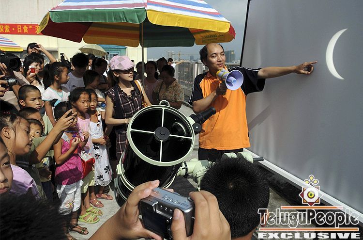 Residents listen to an expert from a science and technology museum give a talk during a partial eclipse in Liuzhou, Guangxi Zhuang autonomous region, China on July 22, 2009.
