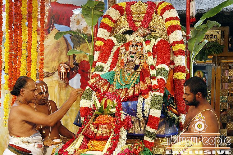 On the first of ongoing three day Annual Pavithrotsavam at Tirumala which began on Saturday Aug 1, priests performed Snapana Tirumanjanam to the processional dieties of Lord Malayappaswamy and His consorts at Sampangi Prakaram inside Sri Vari Temple.