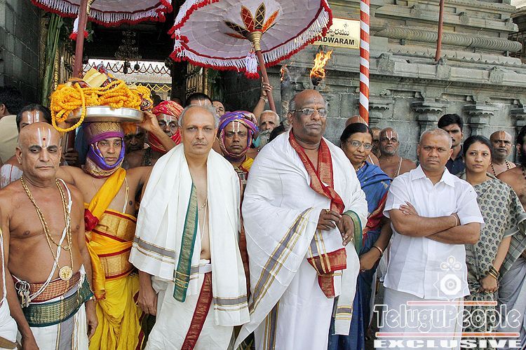 On the concluding of the three day Annual Pavithrotsavam snapana Tirumanajanam (celestial bath) was performed to the processional diety of Lord Malayappaswamy along with His consorts Sridevi and Bhudevi at Samapangi prakaram inside Sri vari Temple, Tirumala on Monday. Later in the evening the processional deities were taken out in procession around four mada streets with Pavithramala adnored.