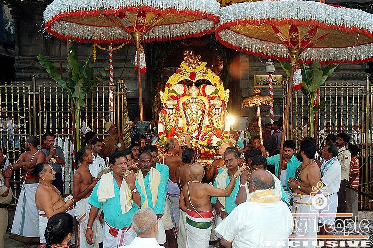 On the concluding of the three day Annual Pavithrotsavam snapana Tirumanajanam (celestial bath) was performed to the processional diety of Lord Malayappaswamy along with His consorts Sridevi and Bhudevi at Samapangi prakaram inside Sri vari Temple, Tirumala on Monday. Later in the evening the processional deities were taken out in procession around four mada streets with Pavithramala adnored.